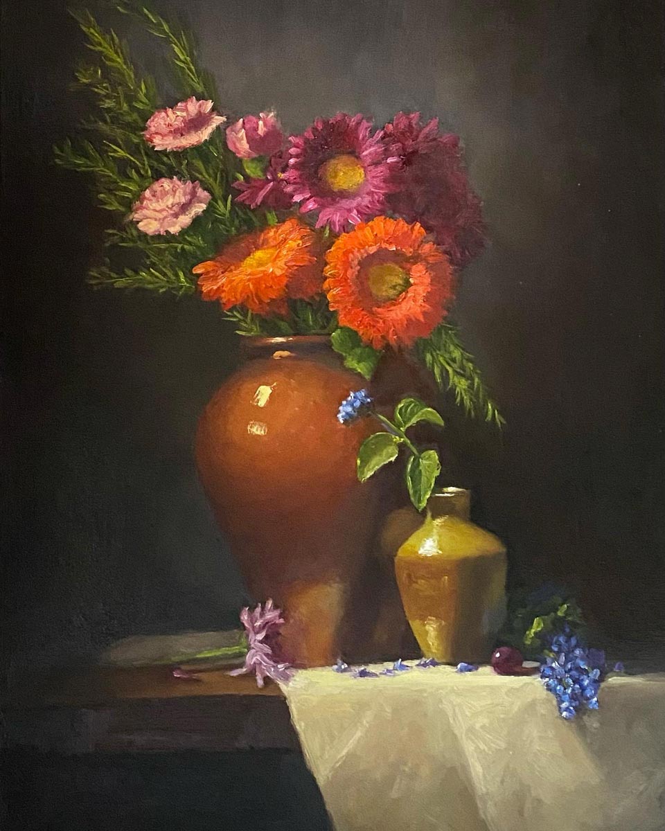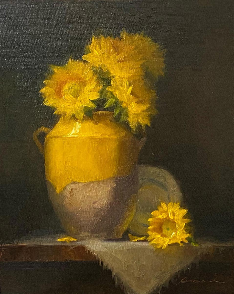 Capturing light is my inspiration, whether painting still life, seascapes, or landscape. Light is changing and fleeting outdoors as we paint to capture that essence; whereas still life painting allows for a deeper dive into how light caresses objects, defining shapes, edges and then disappearing into shadow. I am blessed to see beauty and using light & paint, I desire to share that beauty that transcends, transforms, and inspires others to see the beauty in our every day surroundings.