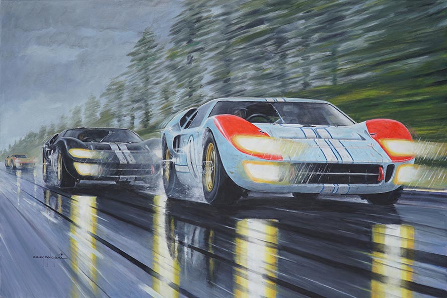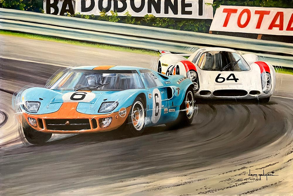 A self-taught artist born near Paris, France and now living in California, I was already interested in auto racing before attending my first-ever race, the 1966 24 Hours of Le Mans, which prompted me to start painting race cars in action.