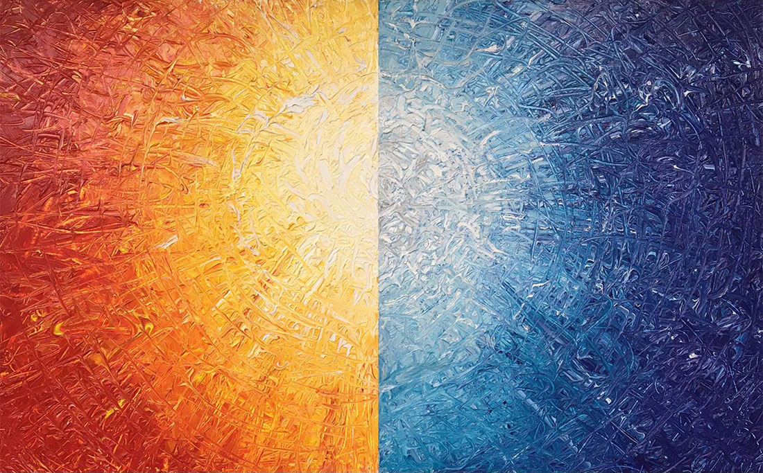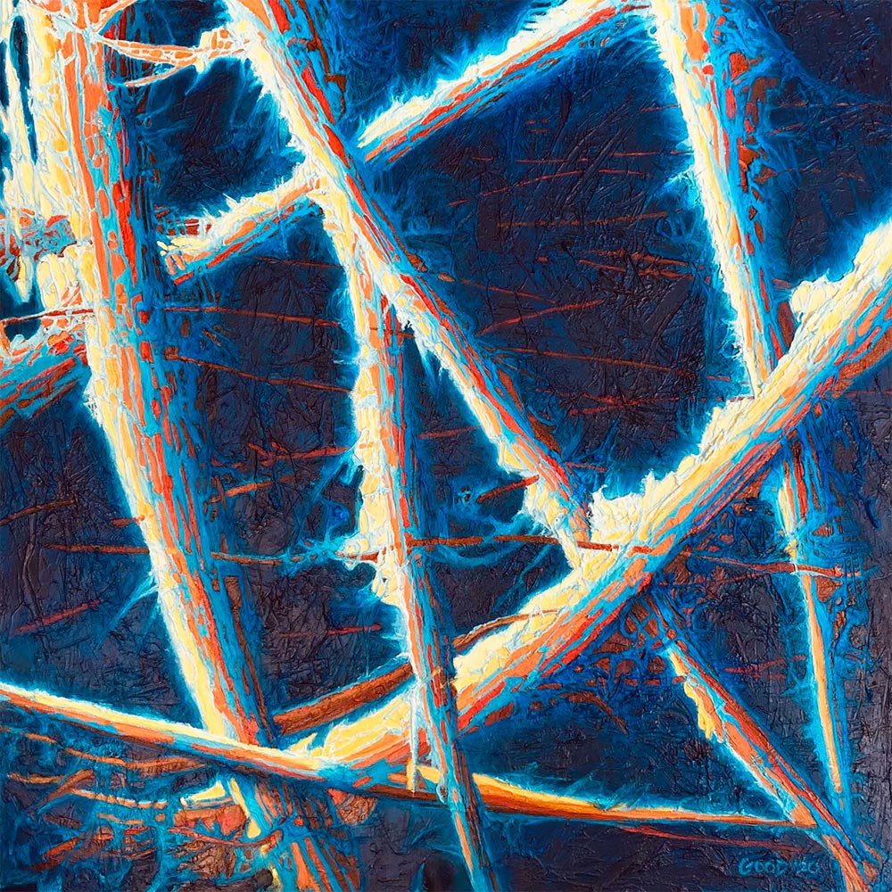 Deborah’s abstract paintings are the result of her studies in Qigong spontaneous movement and her creek photographs are influenced by composer John Cage’s philosophy of using chance procedures to eliminate artistic preferences in his work.
