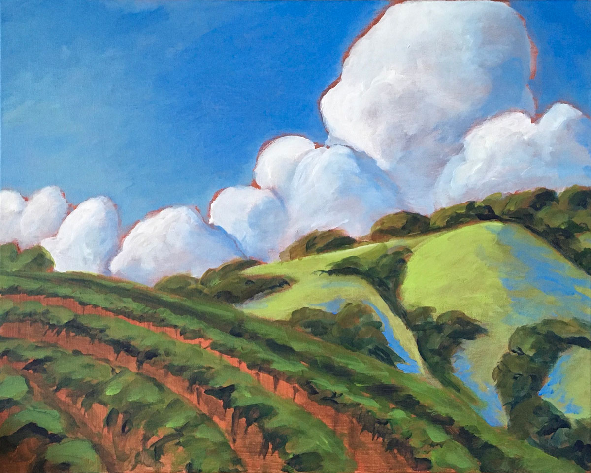 The sensuous shapes of coastal hills, the peaceful surge of the ocean and the energy of crashing waves are her “muse”.