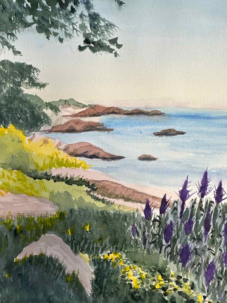 I am a member of the Monterey Bay Plein Aire Painters Association (MBPAPA), the Monterey Peninsula Art Foundation, and the Central Coast Art Association (CCAA). I serve on CCAA’s board. I exhibit locally at shows and special events, and have received several awards. I donate paintings to fundraisers such as for the Carmel Bach Festival, the Monterey Library, Gathering for Women, the Monterey Art Museum and the Pacific Grove Art Center. I previously exhibited in the Peter Silzer gallery in Pacific Grove until it closed in 2017, and regularly exhibit in various local venues.