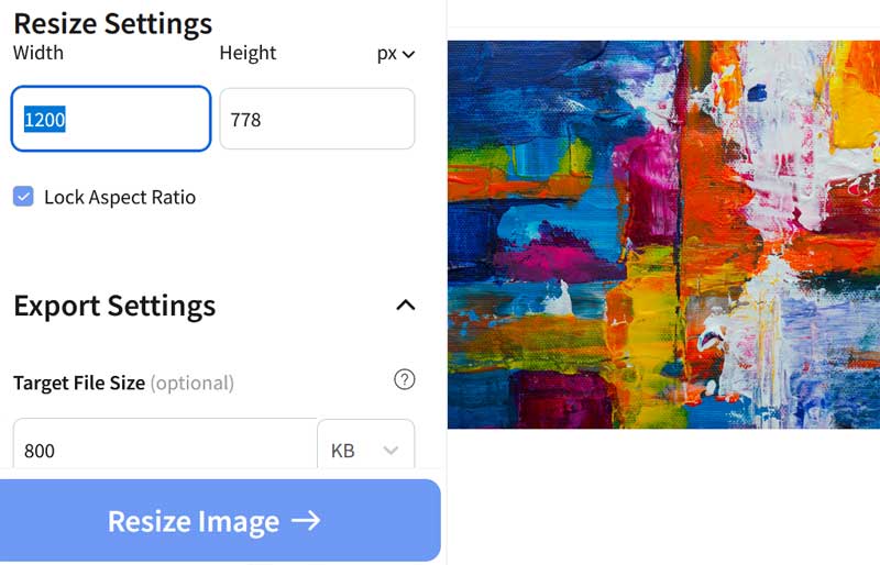 3. Enter your new dimensions under 1200 px (pixels) on the long side. You can also enter a target file size under 300 KB (optional).